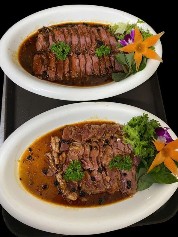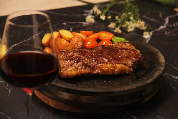 Bò sốt vang nướng đá: Thịt bò được nhập khẩu và chế biến bởi đầu bếp chuyên nghiệp của Hầm Rượu Âu Mỹ đưa món Bò Sốt Vang lên một tầm cao mới. Được tẩm ướp điêu luyện giúp giữ nguyên hương vị của thịt bò tươi. Từng miếng bò hoà quyện mùi sốt vang thơm lừng sẽ tan ra trên đầu lưỡi, cộng hưởng dư vị của vang đỏ mà bạn vừa uống sẽ mang đến một trải nghiệm thưởng thức đỉnh cao